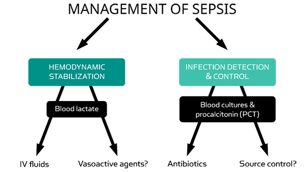 Lactat und PCT sind zusätzliche Marker zur Unterstützung der Diagnose und Behandlung einer Sepsis und eines septischen Schocks.
